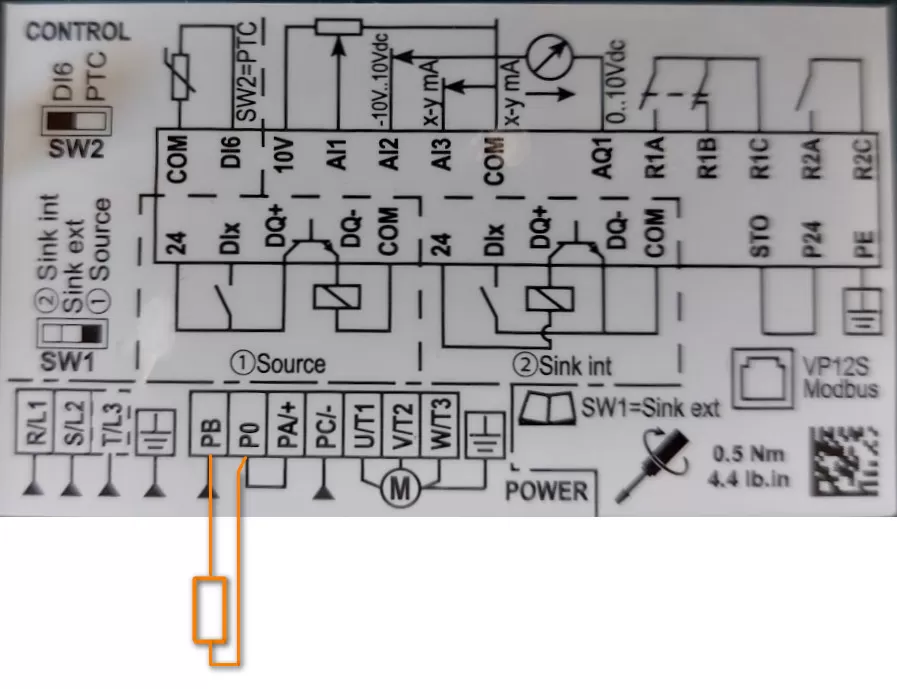 Phải kết nối điện trở hãm với các cực nguồn P0 và PB của biến tần ATV320..C Bộ điều khiển tốc độ biến thiên loại kết cấu nhỏ gọn
