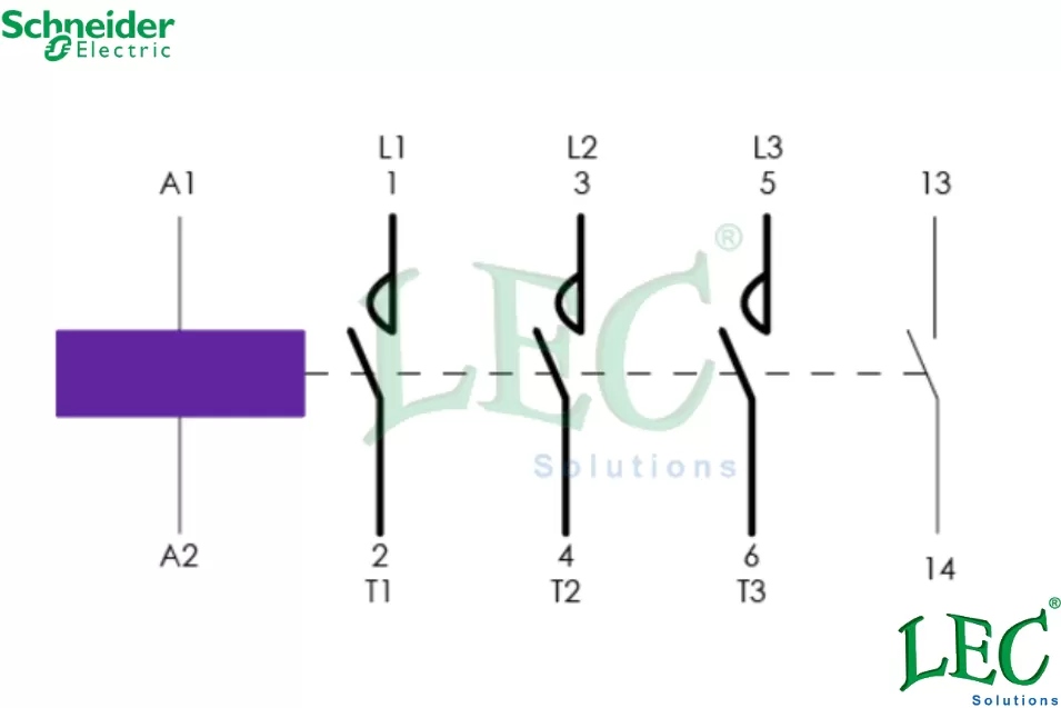- Contactor khởi động sao - tam giác: Có khả năng thay đổi chế độ hoạt động của động cơ từ sơ đồ hình sao sang sơ đồ hình tam giác khi động cơ đã vận hành ổn định nhằm giảm dòng khởi động.