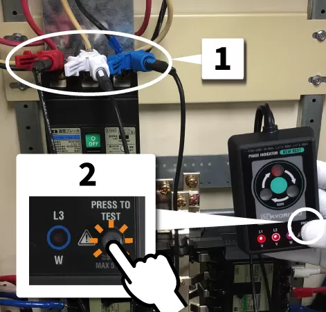 Nếu thứ tự pha đúng (thuận) → đèn chỉ báo xanh hoặc ký hiệu “R-S-T”.