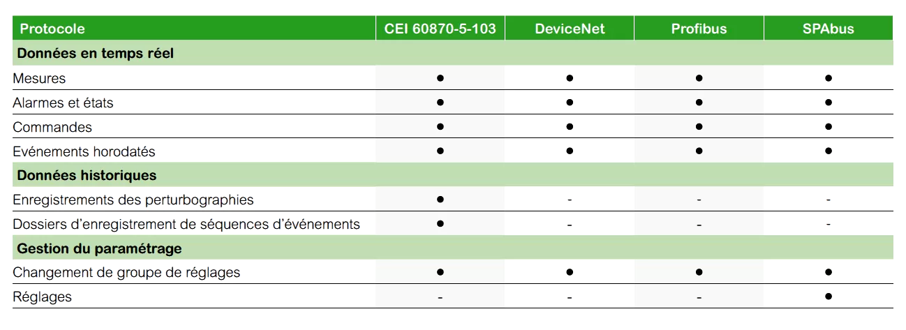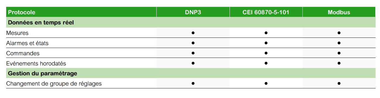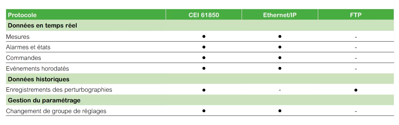 Rơ le Easergy P3 xử lý "bus trạm" IEC 61850 theo các tiêu chuẩn IEC 61850-6, 7-1, 7-2, 7-3, 7-4 và 8-1 Ed.1 hoặc Ed.2, tùy thuộc vào cấu hình.
