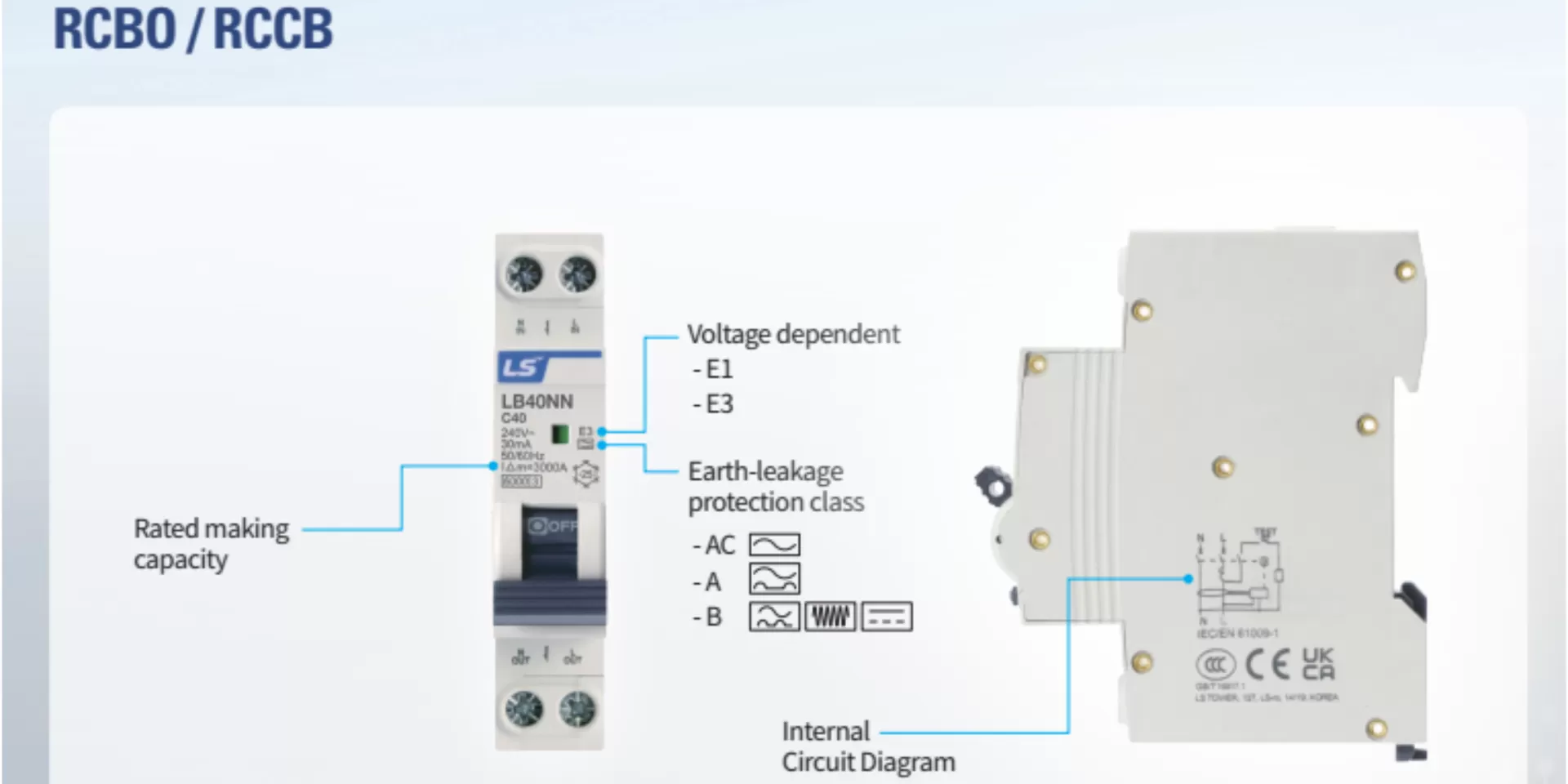 - RCBO: LB40NN, LB40N, LB40H, LB40NB, LB63N, LB63H, LB63H4, LB50HW, LB63HW.