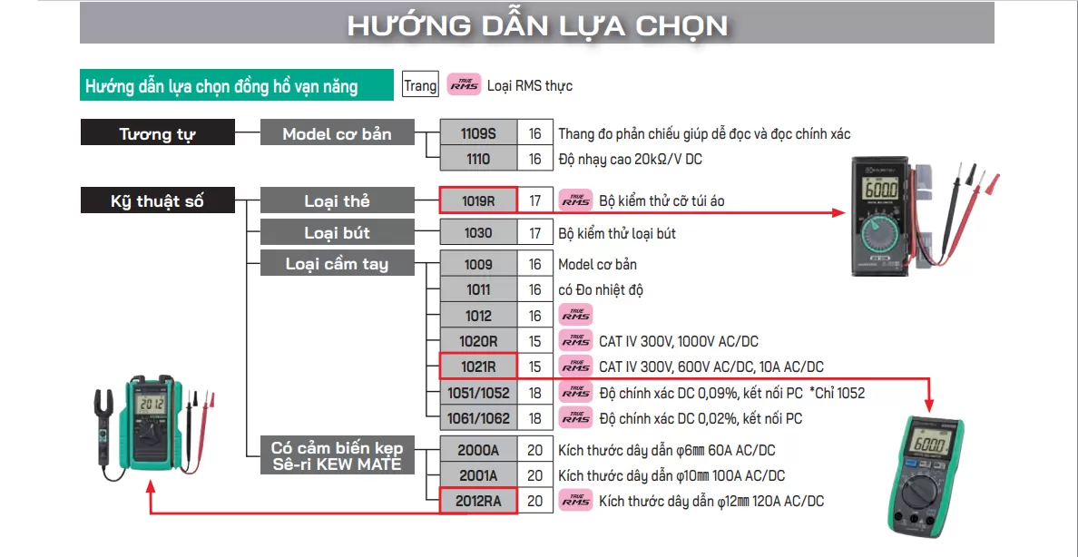 | Kyoritsu 1021R | Số có True RMS | Hiển thị LCD, có true RMS | Cơ điện lạnh, kỹ sư hiện trường |