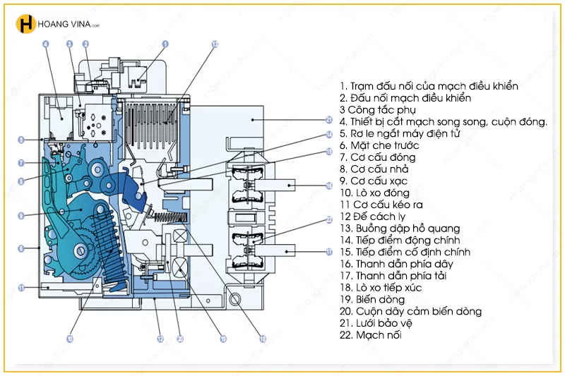 Một ACB tiêu chuẩn gồm các bộ phận chính: