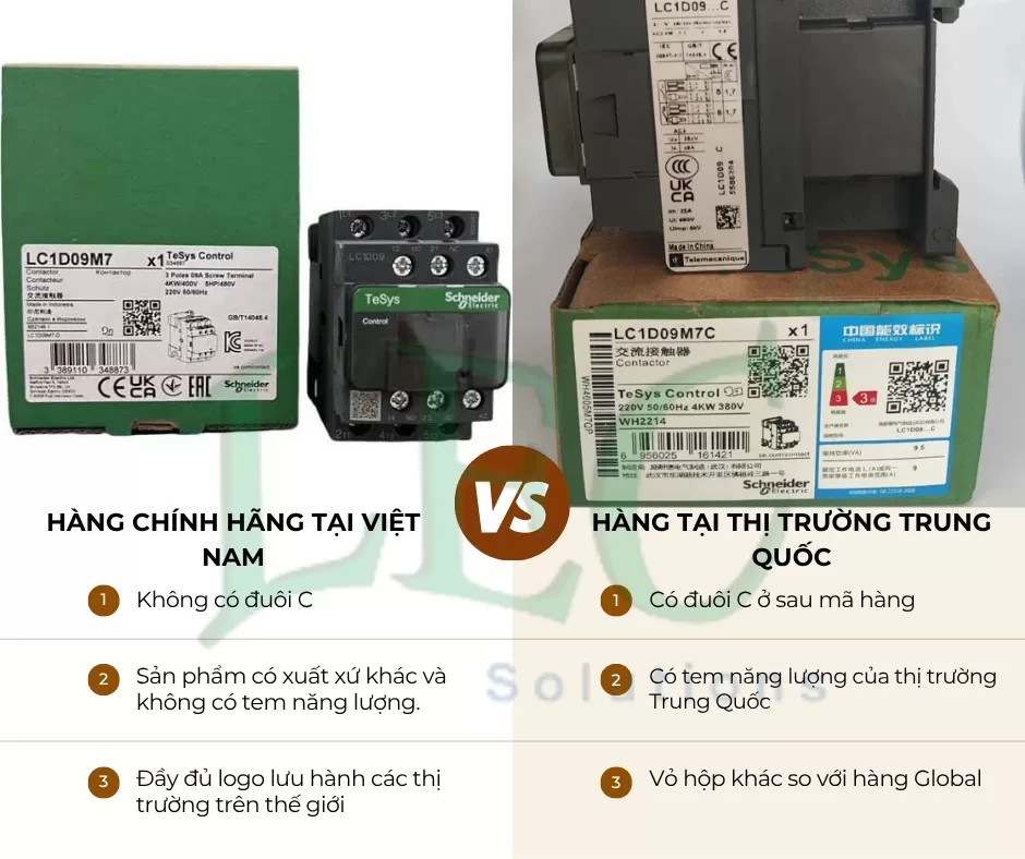 2. Cách phân biệt khởi động từ Schneider chính hãng tại Việt Nam và hàng Trung Quốc nội địa