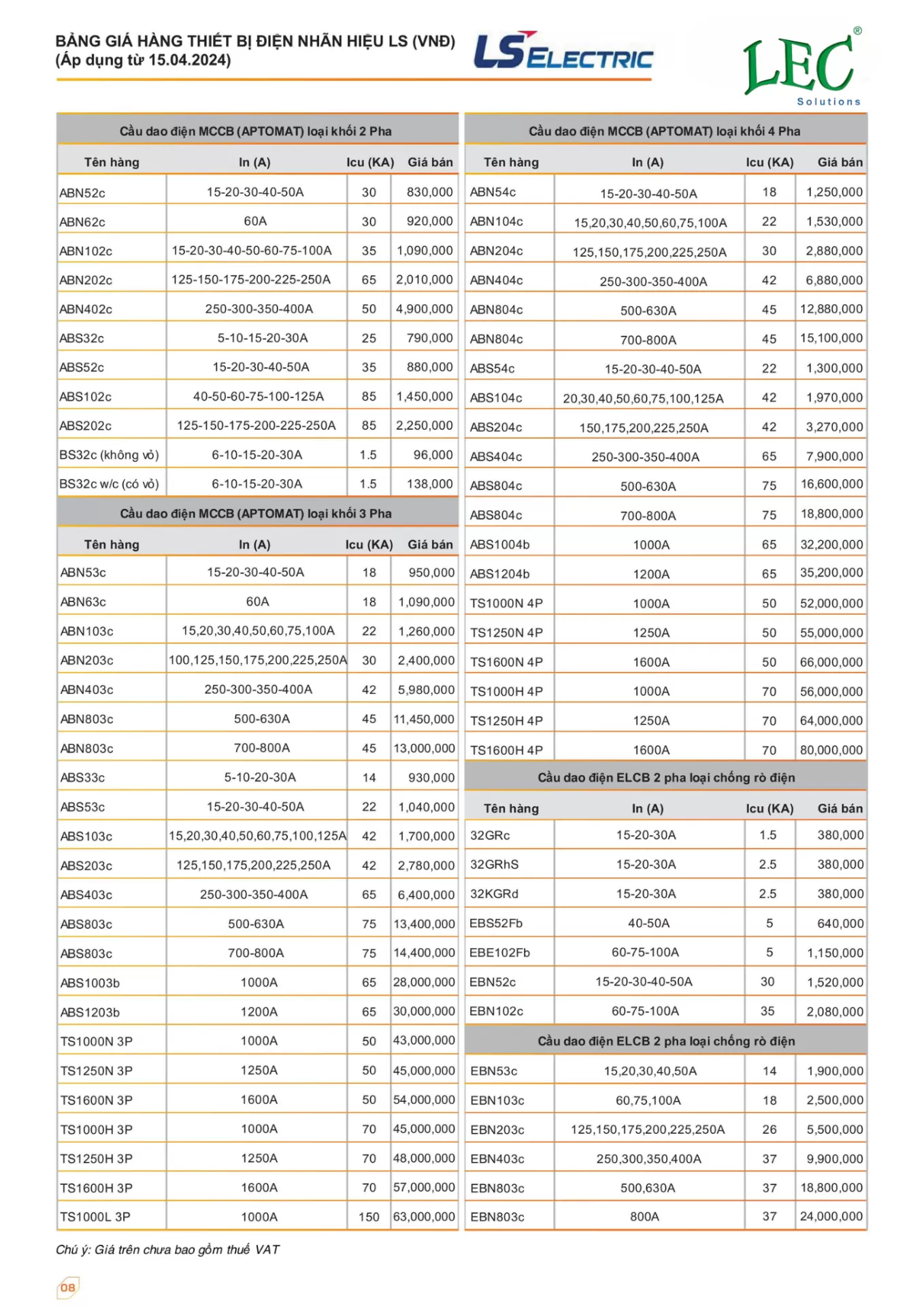 Giới thiệu bảng giá thiết bị điện LS 2024