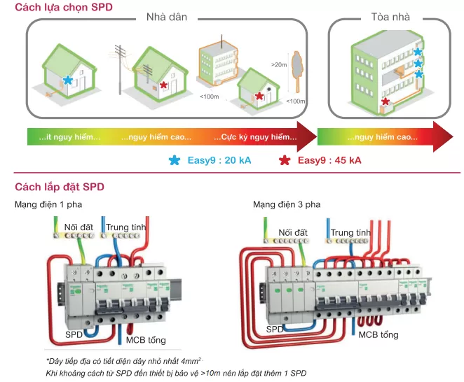 Nếu dùng chỉ một loại SPD, hệ thống có thể không được bảo vệ đầy đủ.